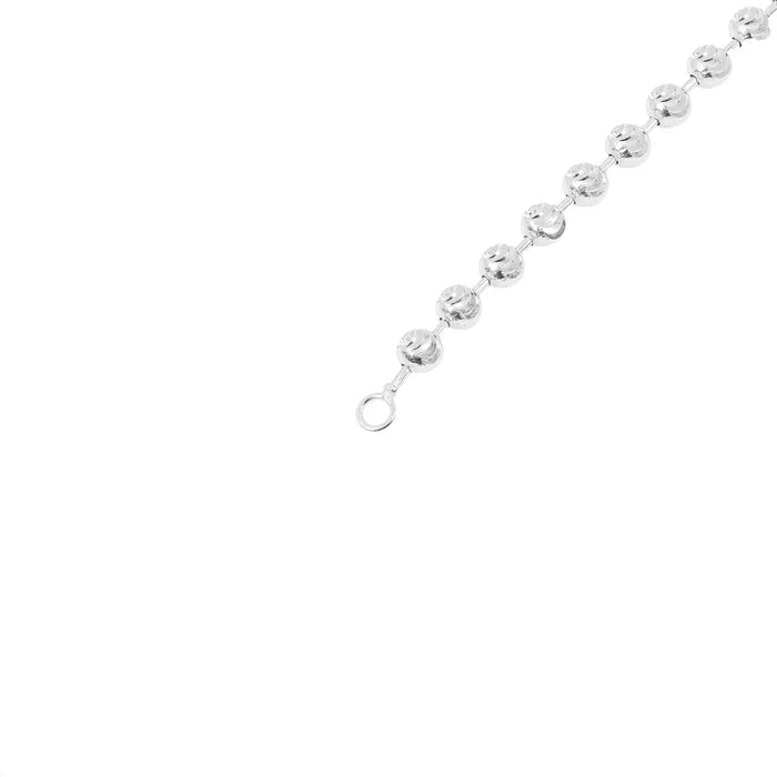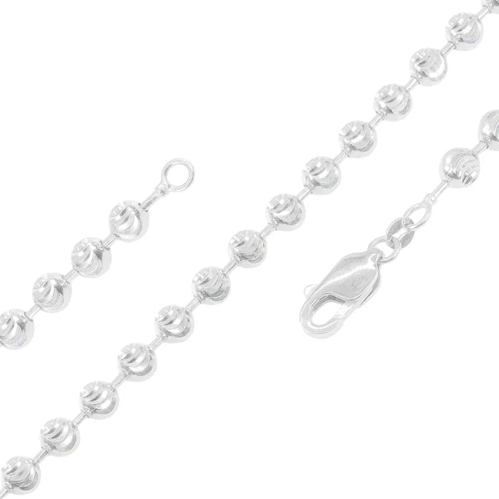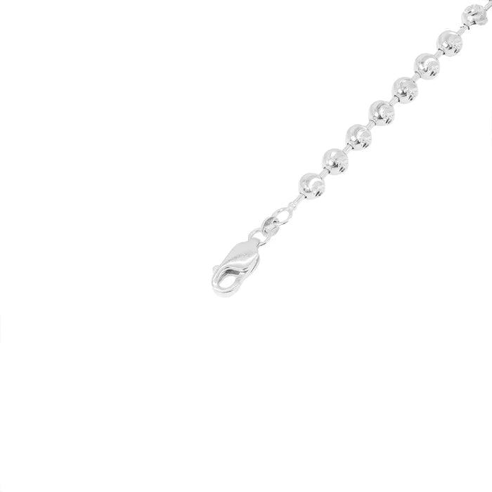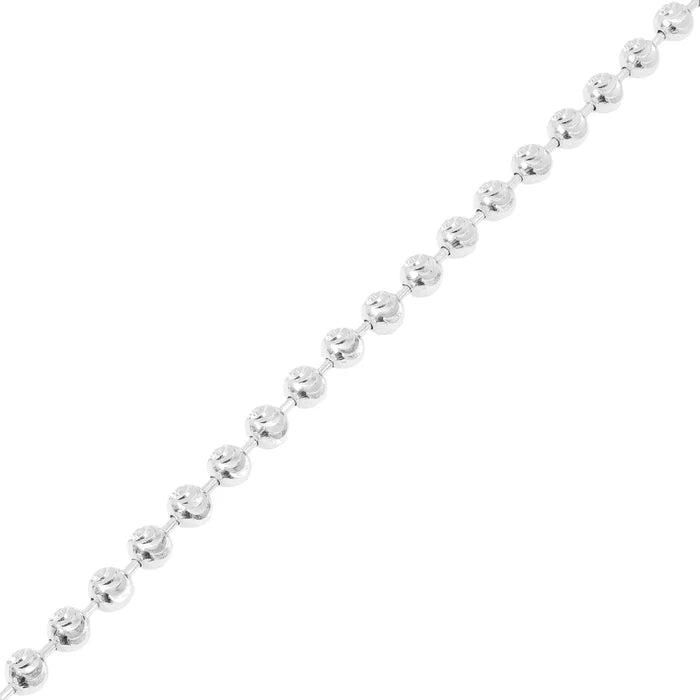 This Italian-made chain features ball type links with crescent moon-shaped cuts. Made of 10KT white gold, it is a beautiful necklace chain that would make a great addition to any jewelry collection. It is perfect for anyone who loves elegant and unique pieces of jewelry.