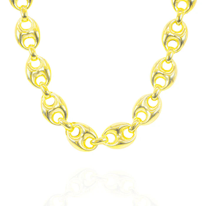 14KT Semi-Solid Puffed Mariner Link Yellow Gold Chain