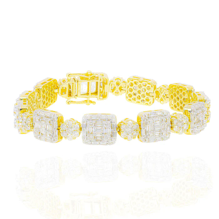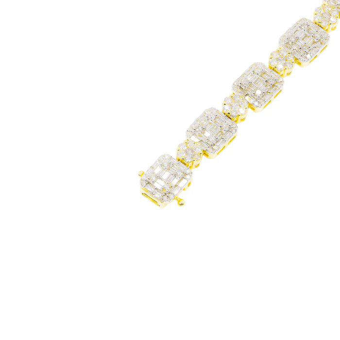 Handcrafted Baguette Bracelet is uniquely designed to have diamond square links connected by smaller circle diamond links casted in pure 14KT White Gold. Beautifully set with VS-SI Clarity Diamonds all throughout the bracelet.
