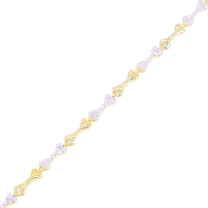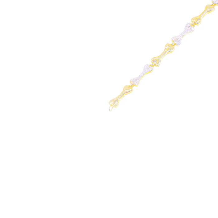 This 14KT Gold & Diamond Bones Bracelet will add a touch of luxury to any look with its beautiful I Clarity Round Diamonds and polished yellow gold metal. It is sure to make a statement with its contemporary design and high-quality materials.