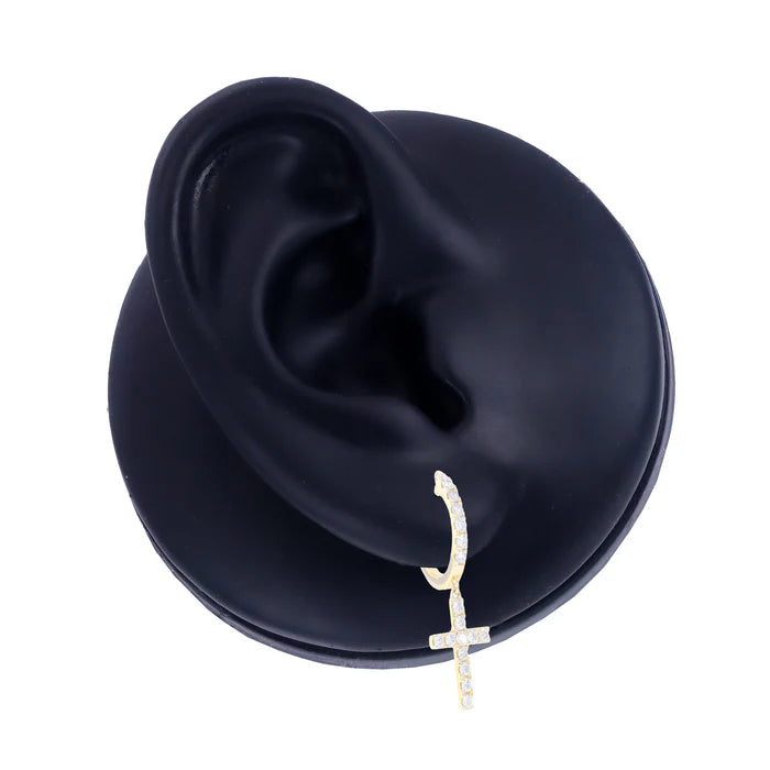 Add a touch of elegance to your ensemble with our Diamond Cross Hoop Earrings. These fashionable earrings, made with 14kt gold, are the perfect addition to any jewelry collection. The dangling design adds a dainty and shiny look, making you the trendsetter of any event. Elevate your style with these stunning earrings today!
